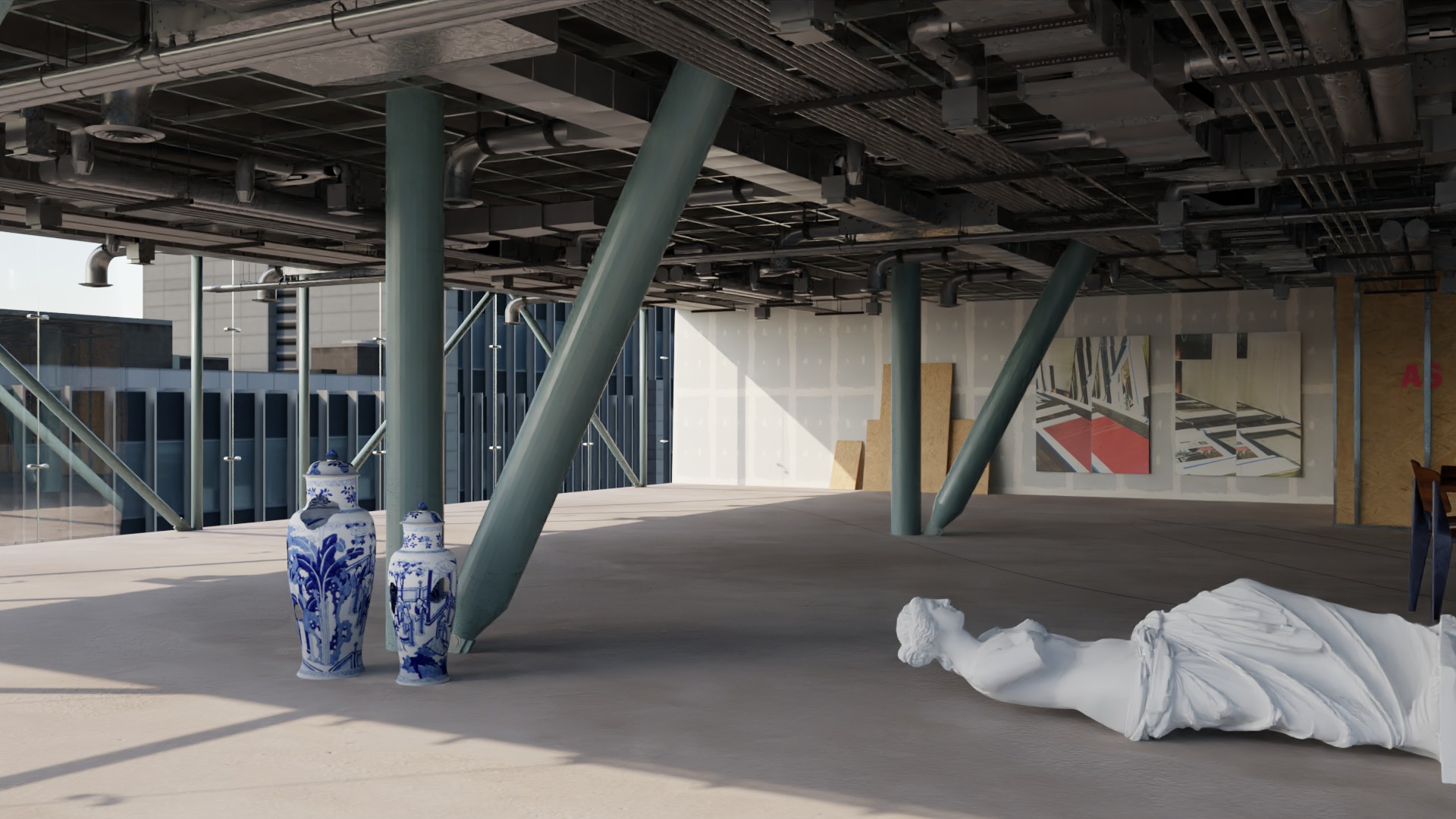 Works by Yannis Tsarouchis in display structure designed by Andreas Angelidakis.