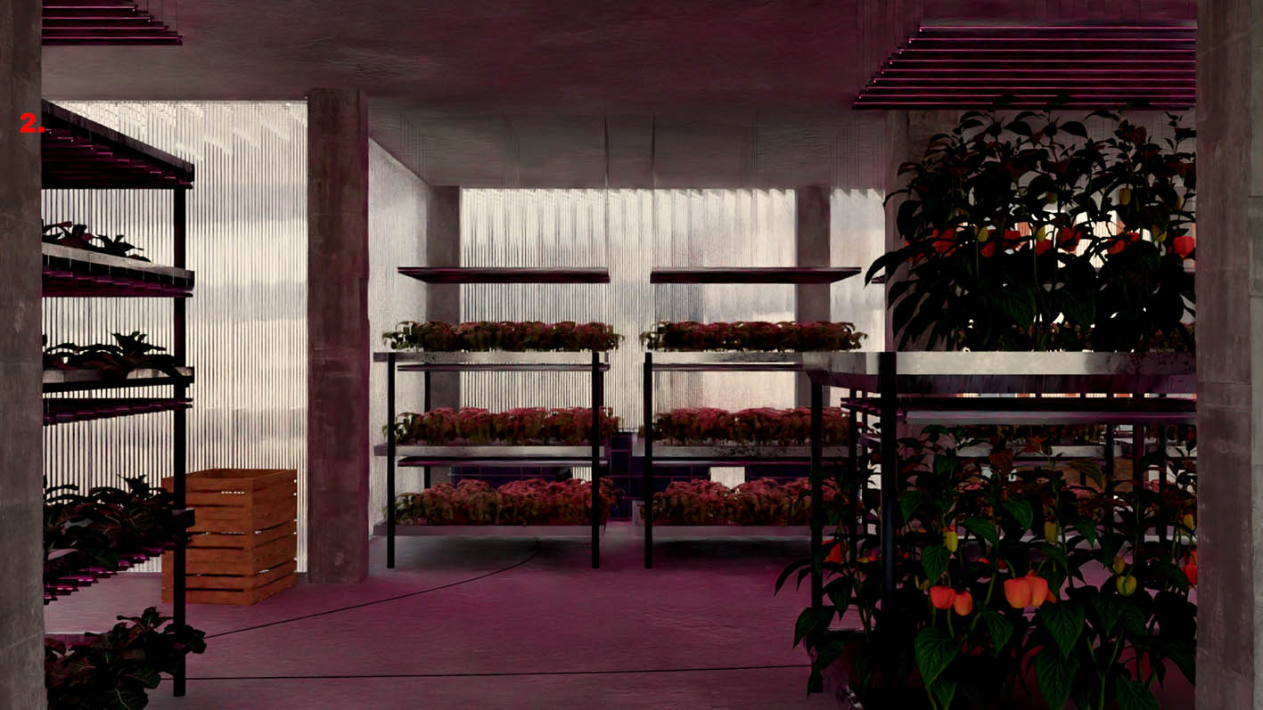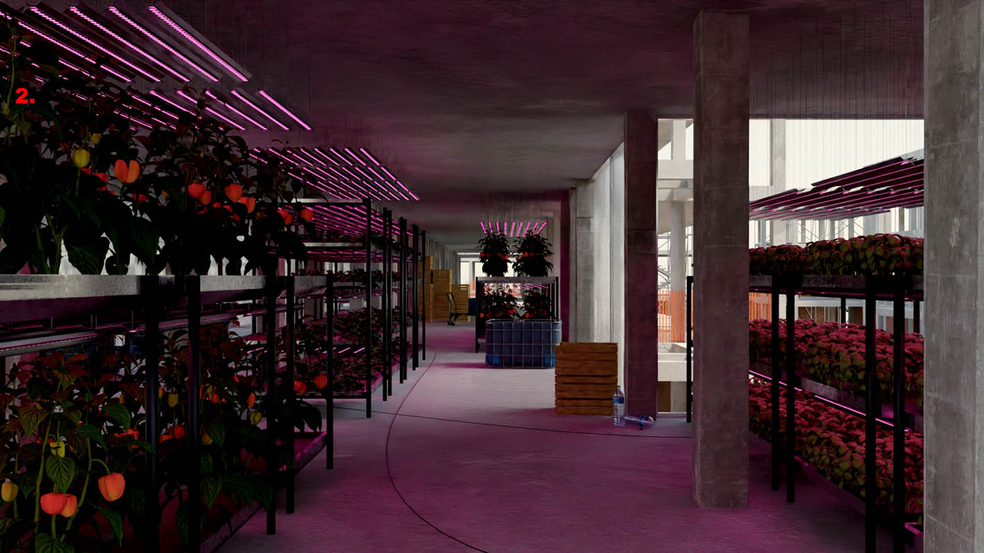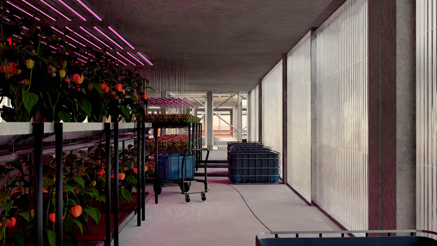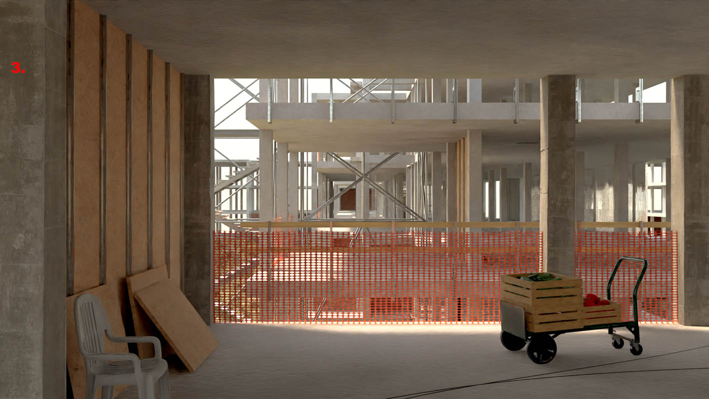 | ABOUT | A transformation of a parking lot structure, introducing a new logic into the urban fabric that recalls the original use of the plot as agricultural land. By following the orientation of the original long-gone farm, this proposal opens up toward a more generous perception of public space. The north facade closes the block perimiter, but the south facade is bent to extend the sidewalk. The interior transformation combines various uses and is particularly adaptable to new ones. Typology wise, each floor can serve as working or living space, or both. Only the technical connections and sanitary facilities are pre-installed. They are part of the load-bearing core. |