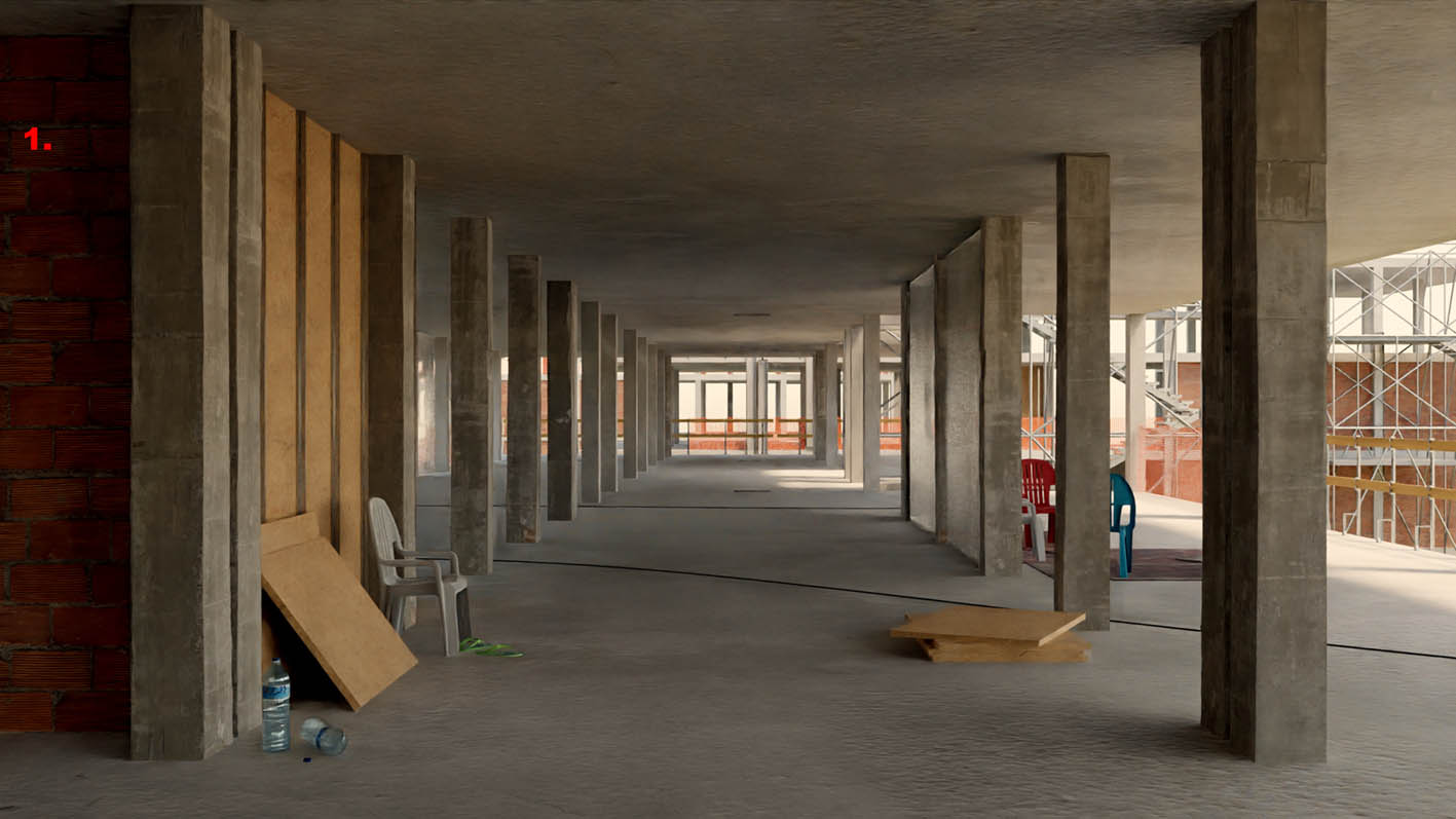 This architectural result rejects notions of preconceived aesthetics. No cladding, no artful detail. In a world increasingly threatened by climate change, which is partly fuelled by an outdated system of architectural production, this project aims at extending acceptance of architectural results, by challenging our contemporary views on beauty and comfort. |