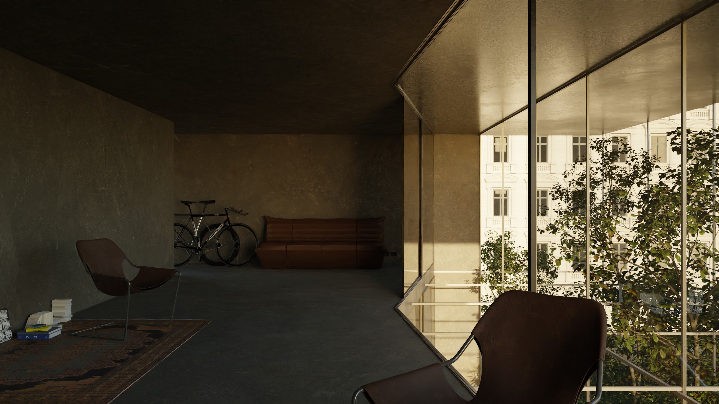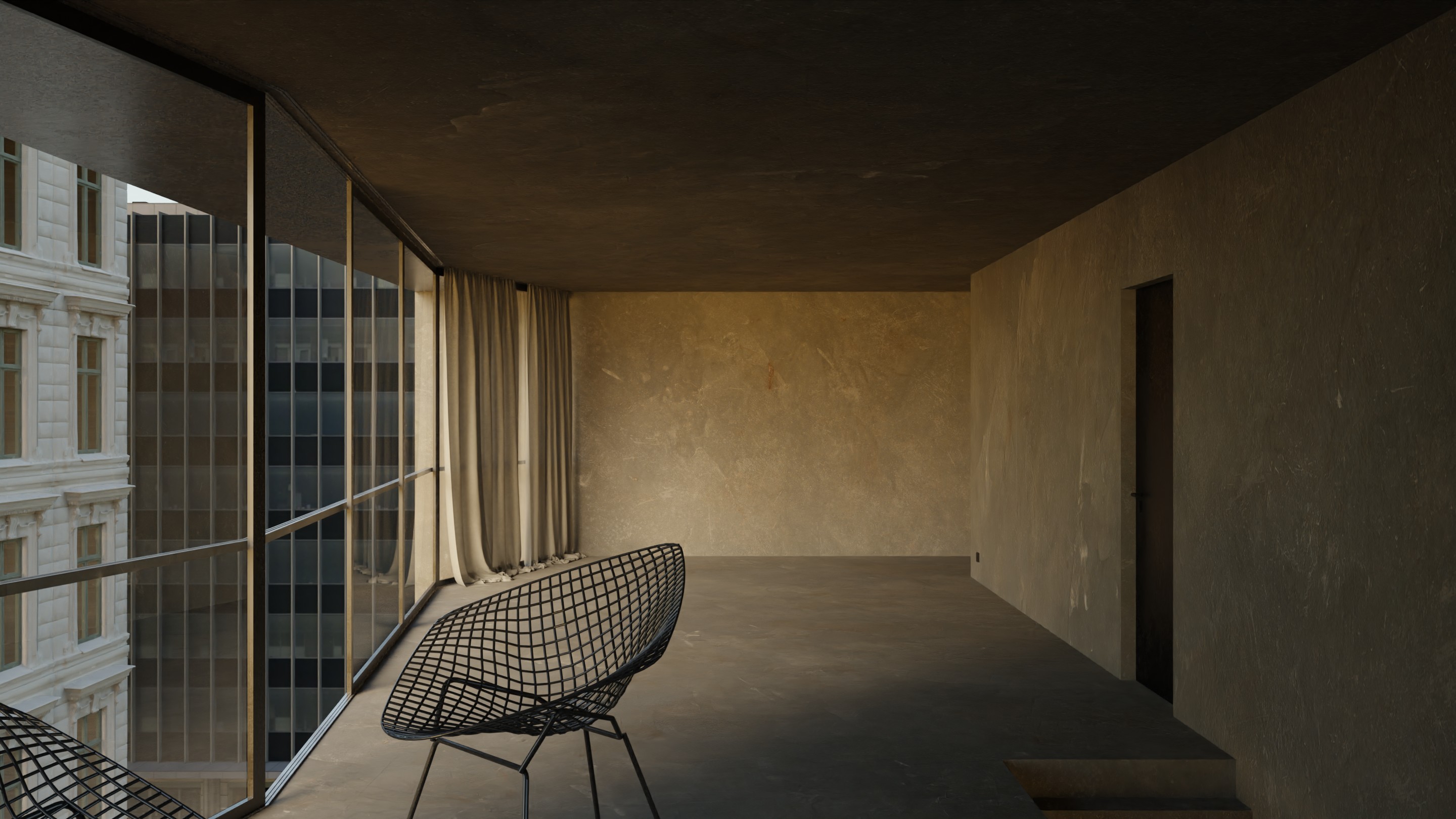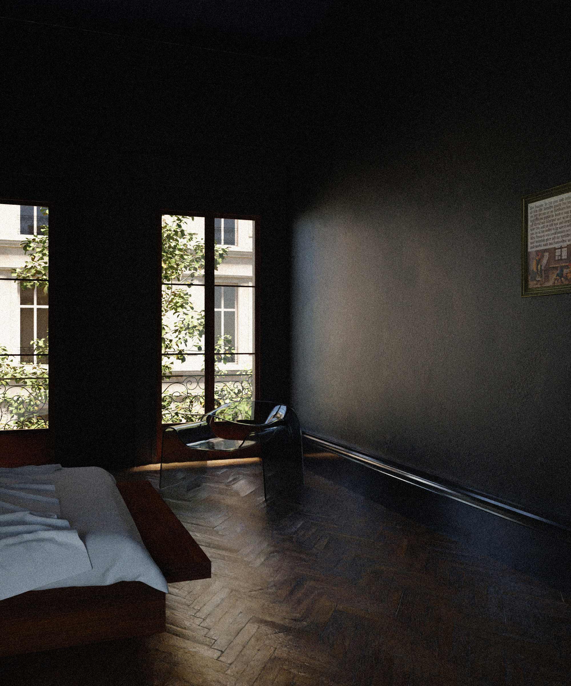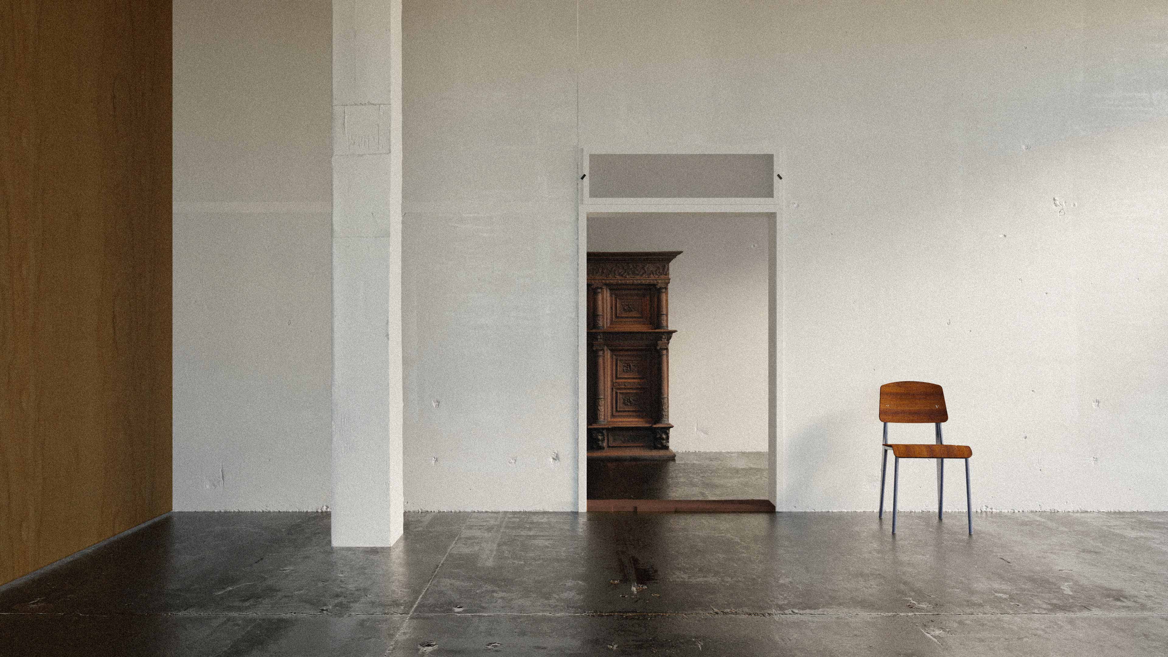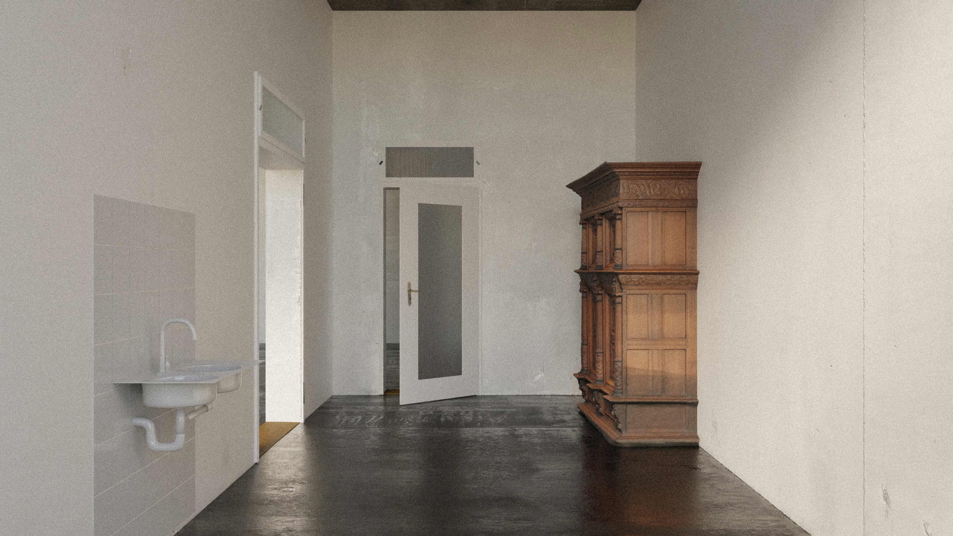 This interior does not rely on a familiar rendering of architecture and its use, but rather focuses on the intrinsic idea behind these architectural realities. As a broadening of the inherent qualities and possibilities offered by architecture and its portrayal through its own display. Through their materiality the walls become imprinted as representations. They are permeated by images and become part of them. |