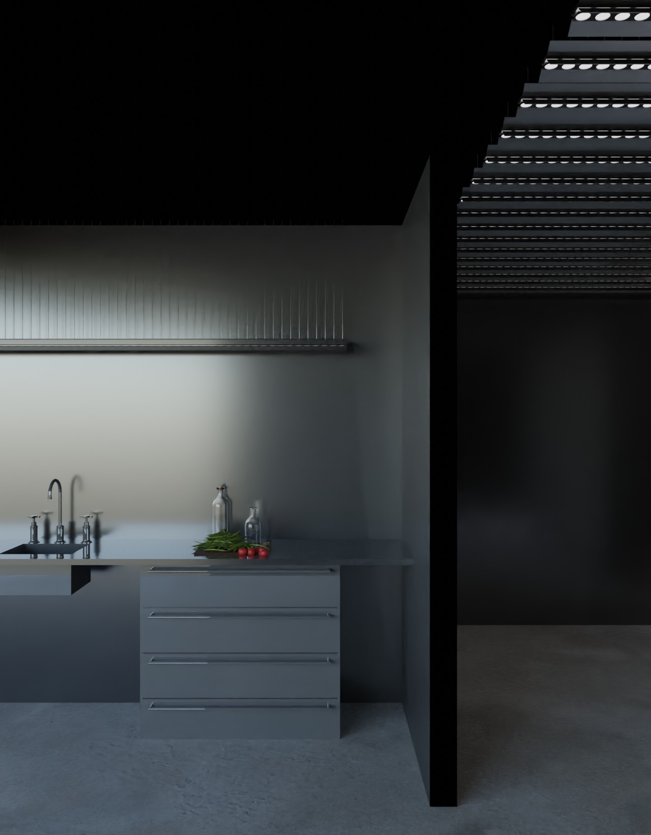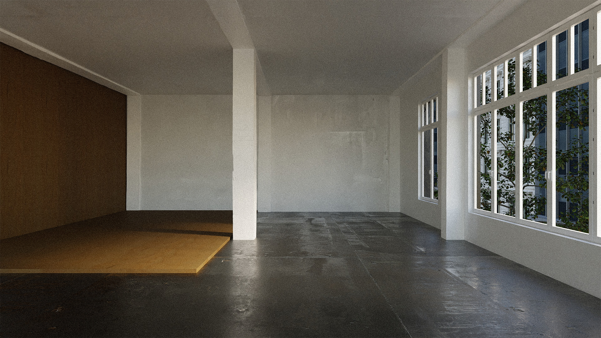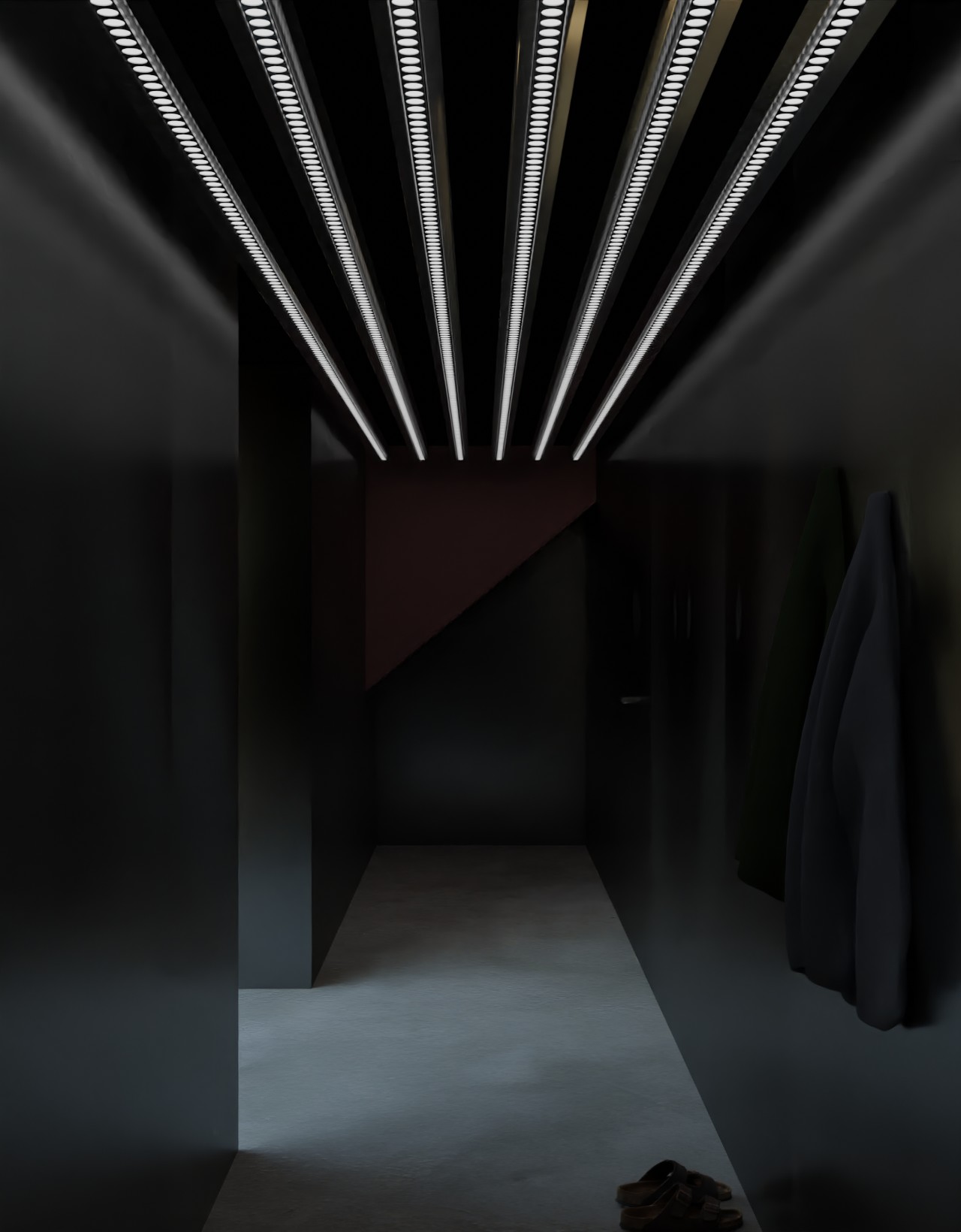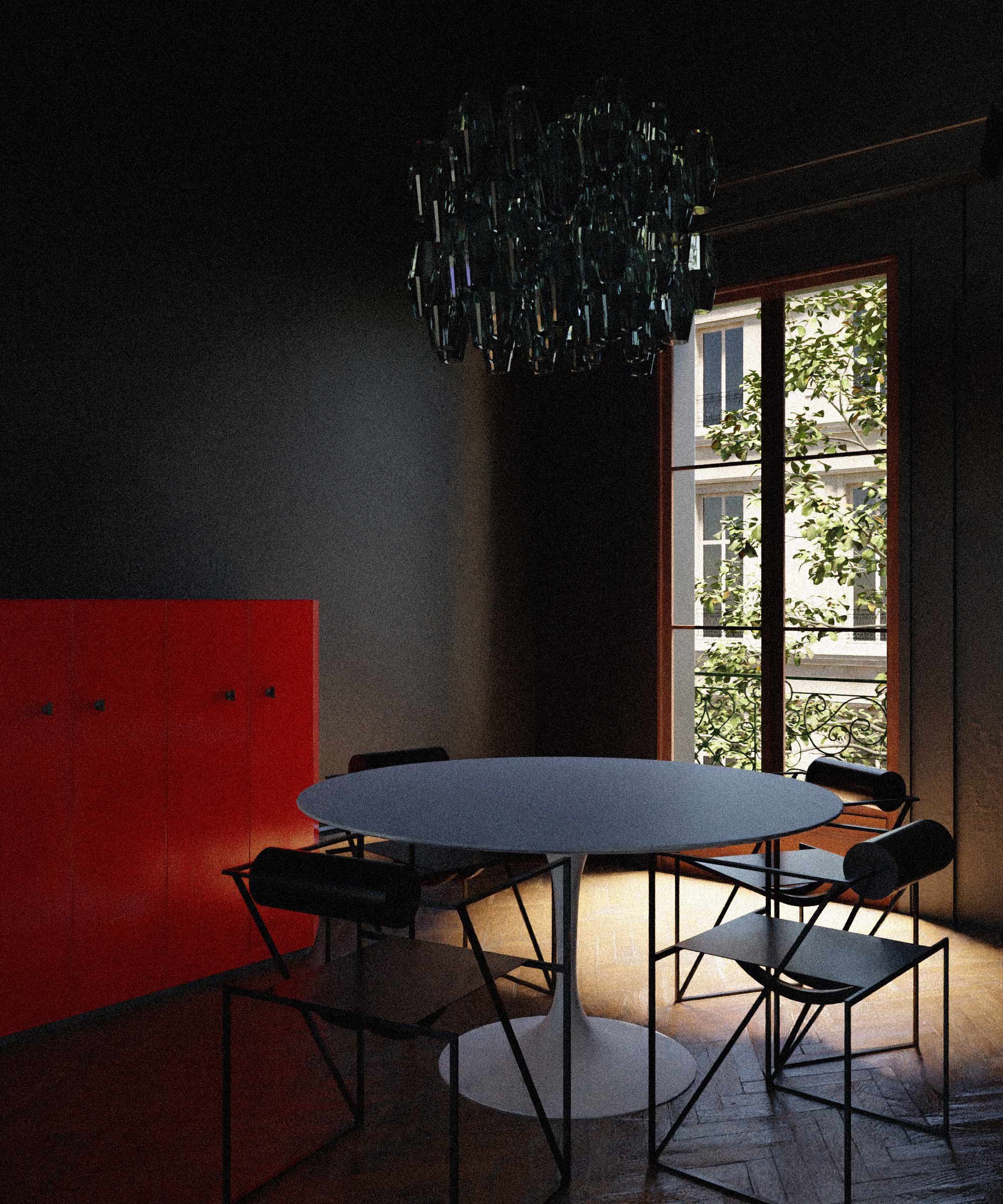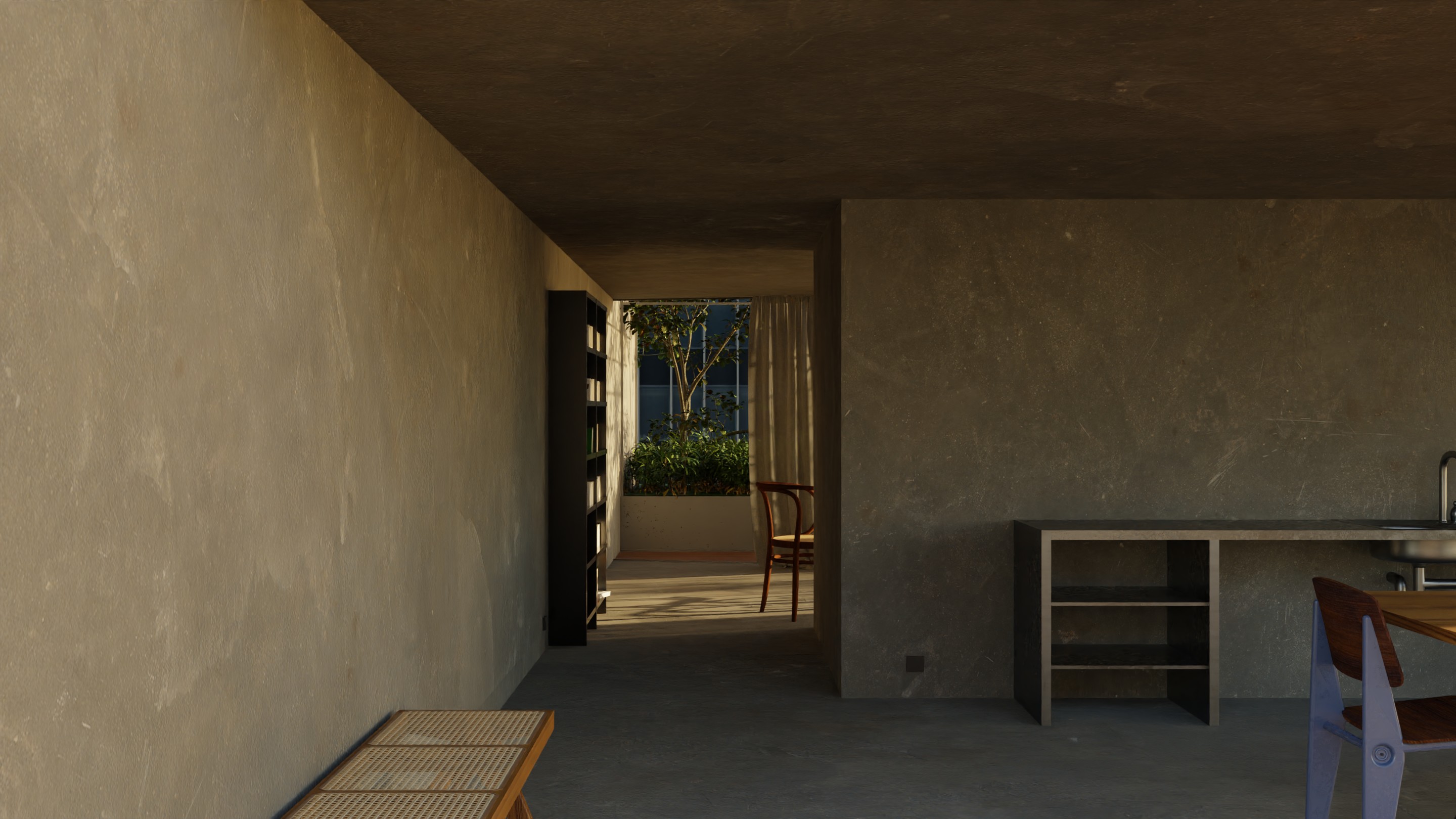 This interior does not rely on a familiar rendering of architecture and its use, but rather focuses on the intrinsic idea behind these architectural realities. As a broadening of the inherent qualities and possibilities offered by architecture and its portrayal through its own display. Through their materiality the walls become imprinted as representations. They are permeated by images and become part of them. |